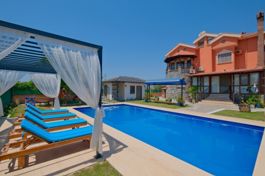 konforlu bir tatil geçirmeniz için düşünülmüştür. Dış mekânda ise 10x5 metre ölçülerindeki özel havuz, şezlonglar,