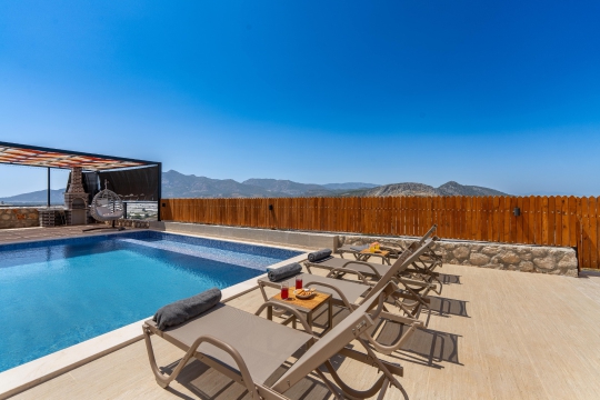 Villanın kendine ait özel yüzme havuzu, dışarıdan görünmeyecek şekilde konumlandırılmış olup gün