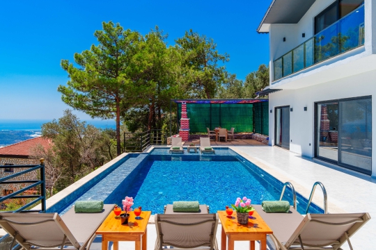 Kalkan İslamlar mevkiinde bulunan kiralık balayı villası, sessizliğin, huzurun hakim olduğu bir villada